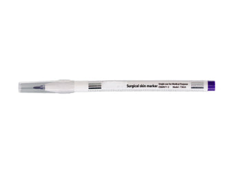 De marker bevat violetkleurige, goed zichtbare inkt die veilig is voor gebruik op de huid.